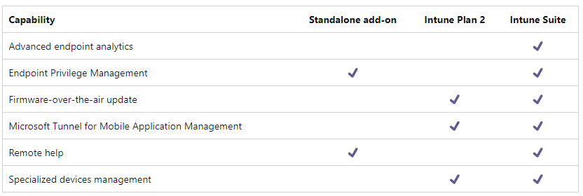 - Intune Suite (includes plan 2, but not plan 1)