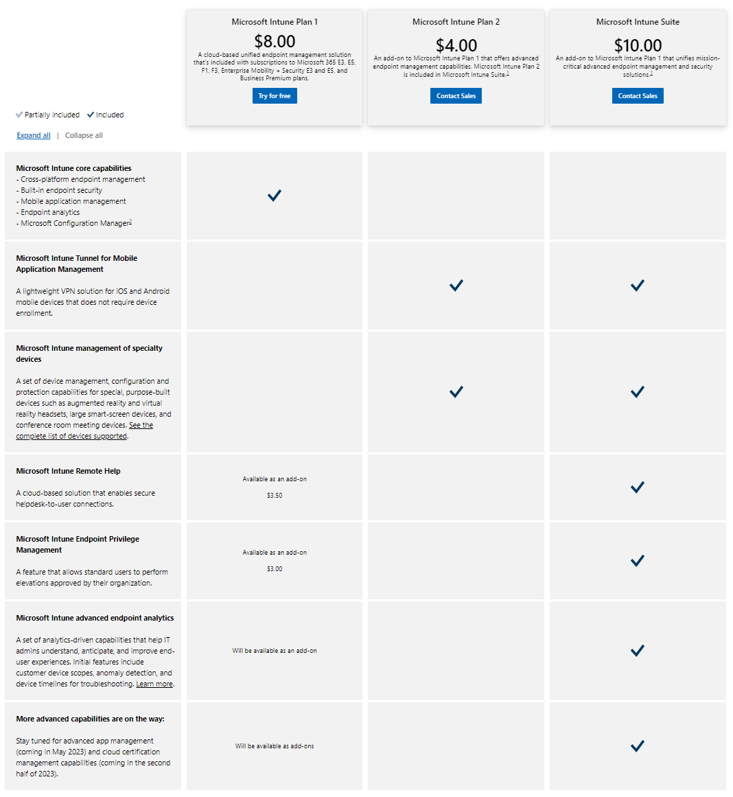 The Intune Suite comes as an additional license at extra cost per user, per month. Intune is separated in three plans: