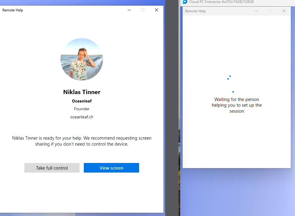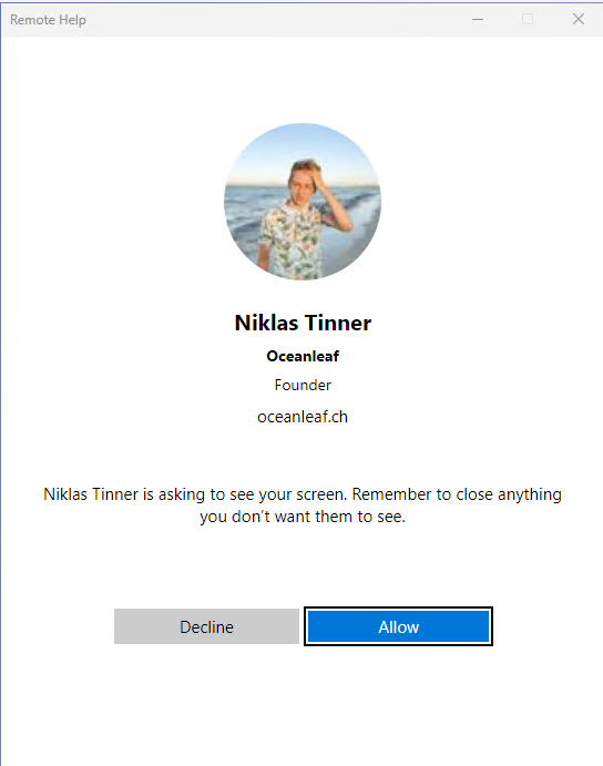5. The helper can now choose how he wants to connect to the user and afterwards the user needs to allow the request and there we go! The connection for support is established ๐
