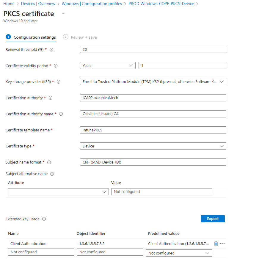 - Check the Subject (Alternative) Name -> here it is important to configure these right in the Intune profile (correct attribute such as DNS)