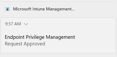 - The end user receives a toast notification within a few minutes and can then run the app elevated ❗Note the "Continue" button instead of send