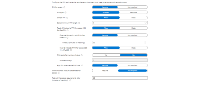 | Compliance options | Apply Intune compliance policies | Check access requirements |