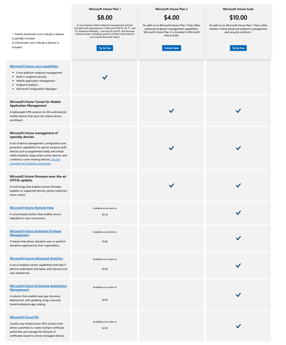 Intune is separated in three plans: