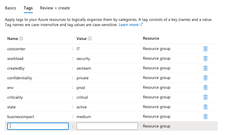 Azure tags are a key-value pair that can be set for each and every resource in Azure. It is basically metadata, to better identify, group and recognize resources. It is not a bad idea to consider these and add pre-defined templates.