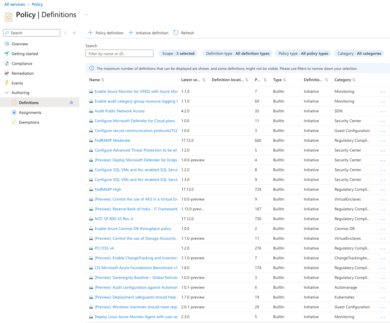 Azure Policy is a definition-based system to apply policies and restrictions that are evaluated against Azure resources. Different compliance sets are pre-defined and can be applied. Those hold definitions (json files) that check certain features, services, settings and attributes of resources. The overall compliance state defines how much you comply with your own or external compliance regulations.