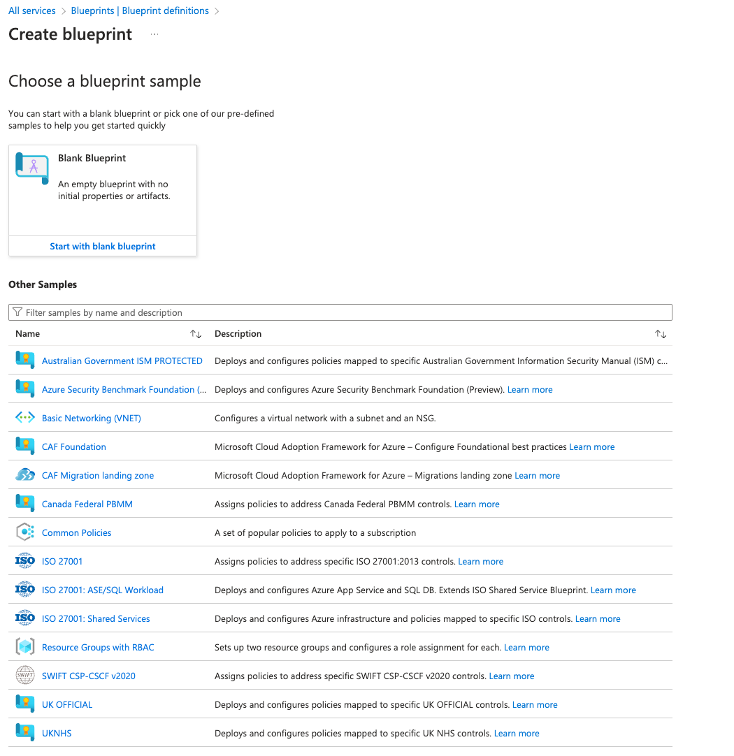 Azure Blueprints are defined templates (public custom) to create resources of. Those resources are simply created out of a blueprint and come with pre-configured settings that are defined in the blueprint.