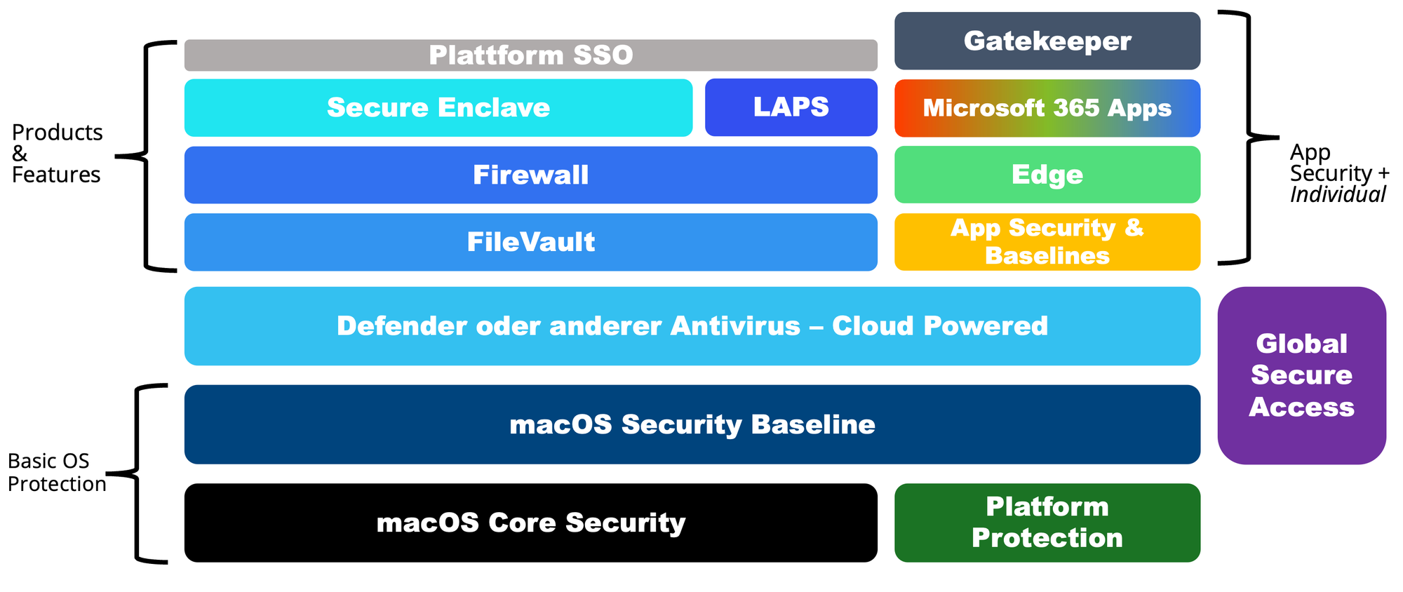 The whole security stack consists of layers including the Apple Platform Security Guide and specific security features and extensions that Microsoft built in addition.