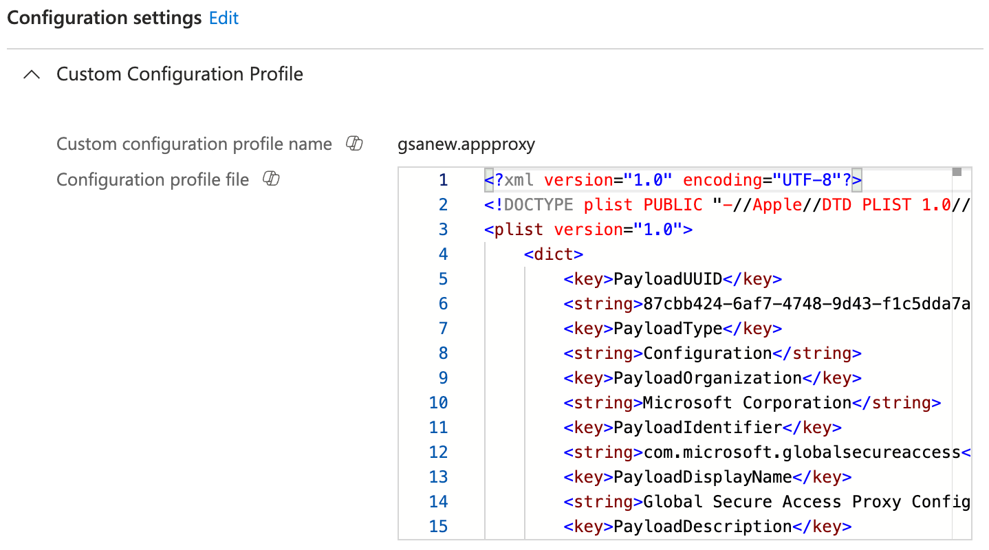 To onboard GSA on a macOS device you need the following configuration through Intune: