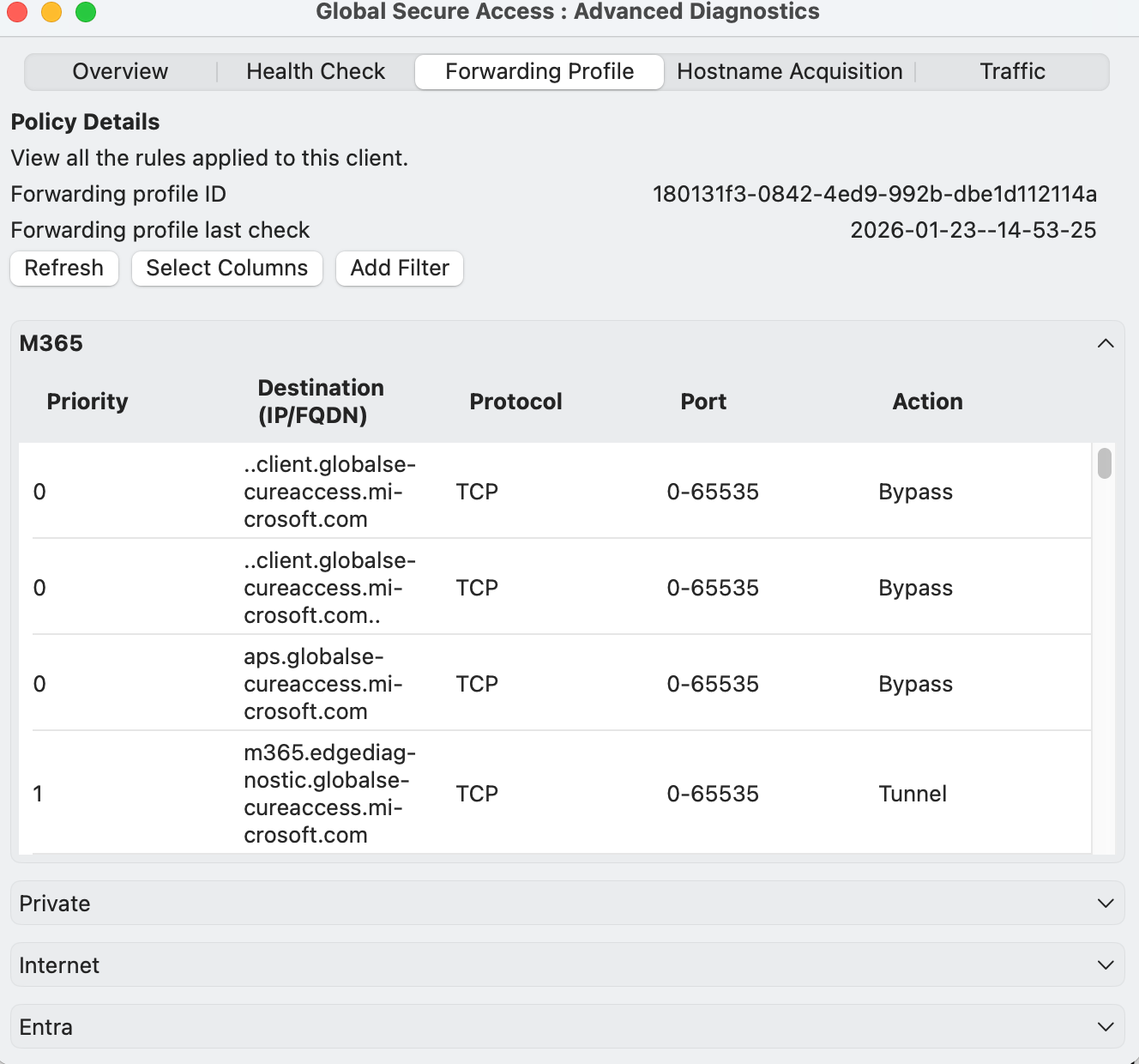 Microsoft Global Secure Access on macOS works through a client application installed on the device, which secures network traffic at the end-user level, independent of the network with which you are connected. This client's main task is to redirect specific network traffic, determined by configured "forward profiles," to the Global Secure Access cloud service for security processing, while other traffic goes directly to the network. This enables VPN, ZTNA, and Cloud-Firewall capabilities. Technically, it achieves this by adding proxy configurations and requires user approval for its system extension to function properly.