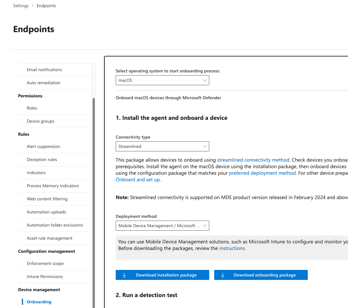 To onboard Defender AV and MDE on a macOS device you need the following configuration through Intune: