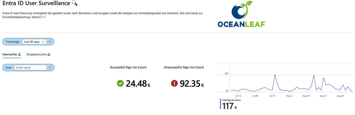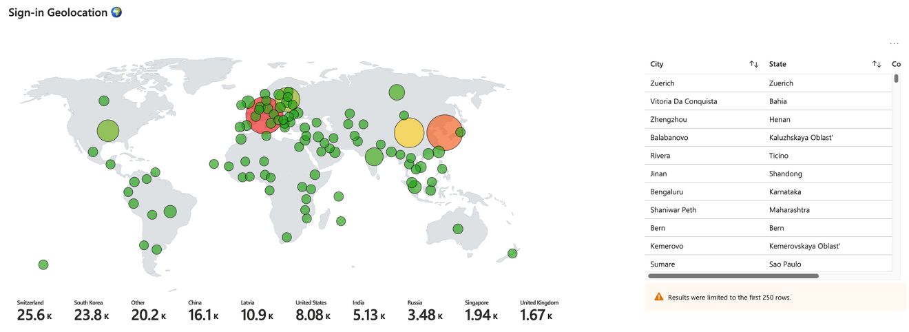 - Use KQL and Azure Workbooks, as shown below for custom reports: