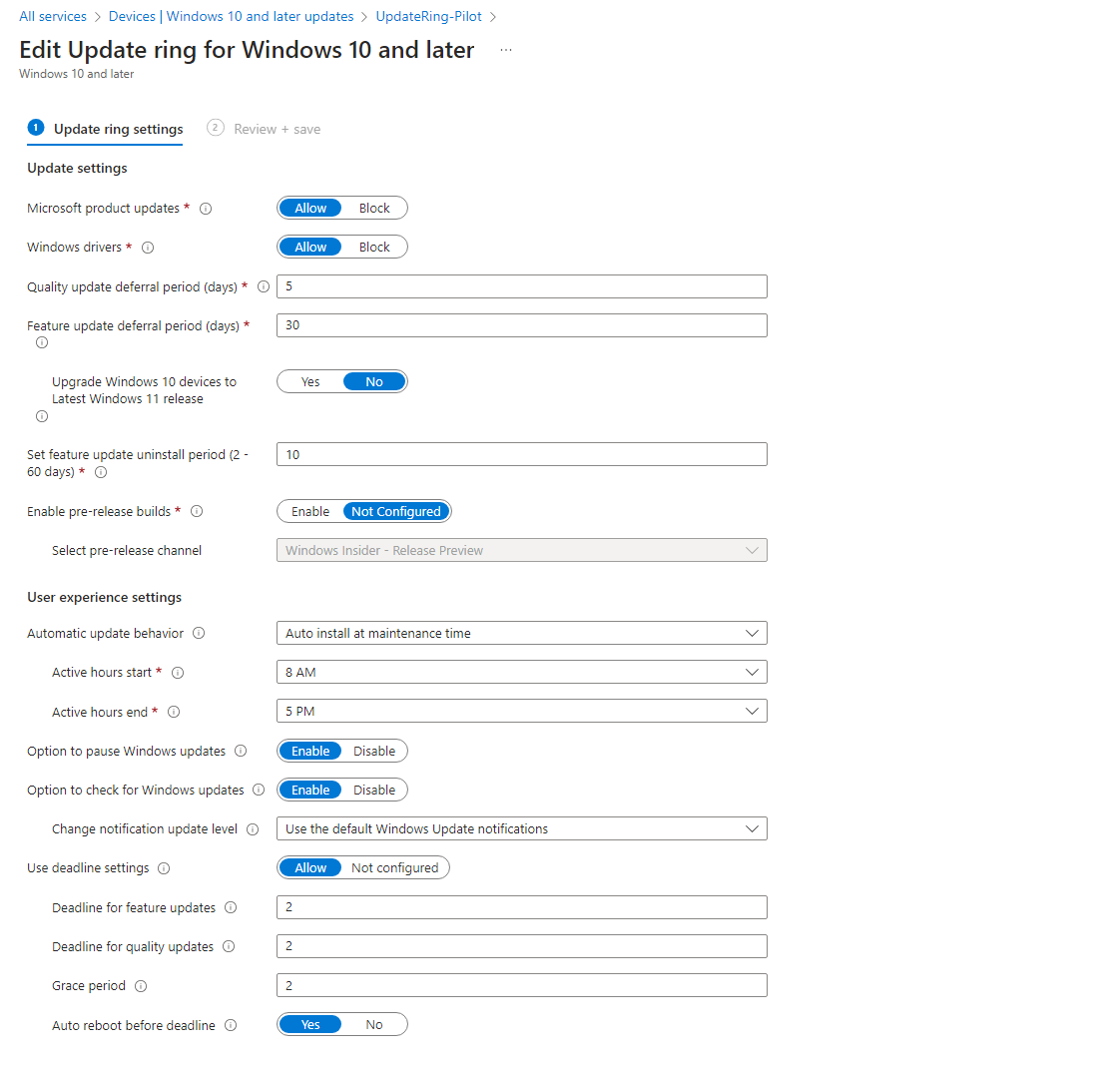In Intune you can easily deploy policies for all Microsoft related updates. Create an update ring for Windows 10 and later and configure it accordingly. This is a recommendation: