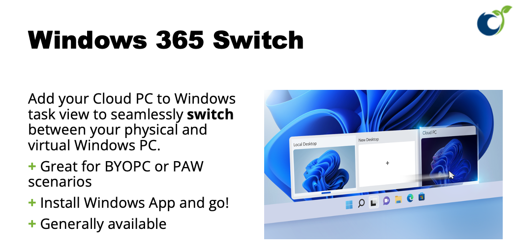 As both the Windows operating system and Windows 365 are owned by Microsoft, they both benefit from that synergy. Microsoft's insights and ownership of those platforms drive the integration capabilities and also efficiently solve challenges between traditional physical PCs and Cloud PCs. They have proven it with features like Windows 365 Switch and Boot. And I assume we can expect even more of those great capabilities in the future. 🥳